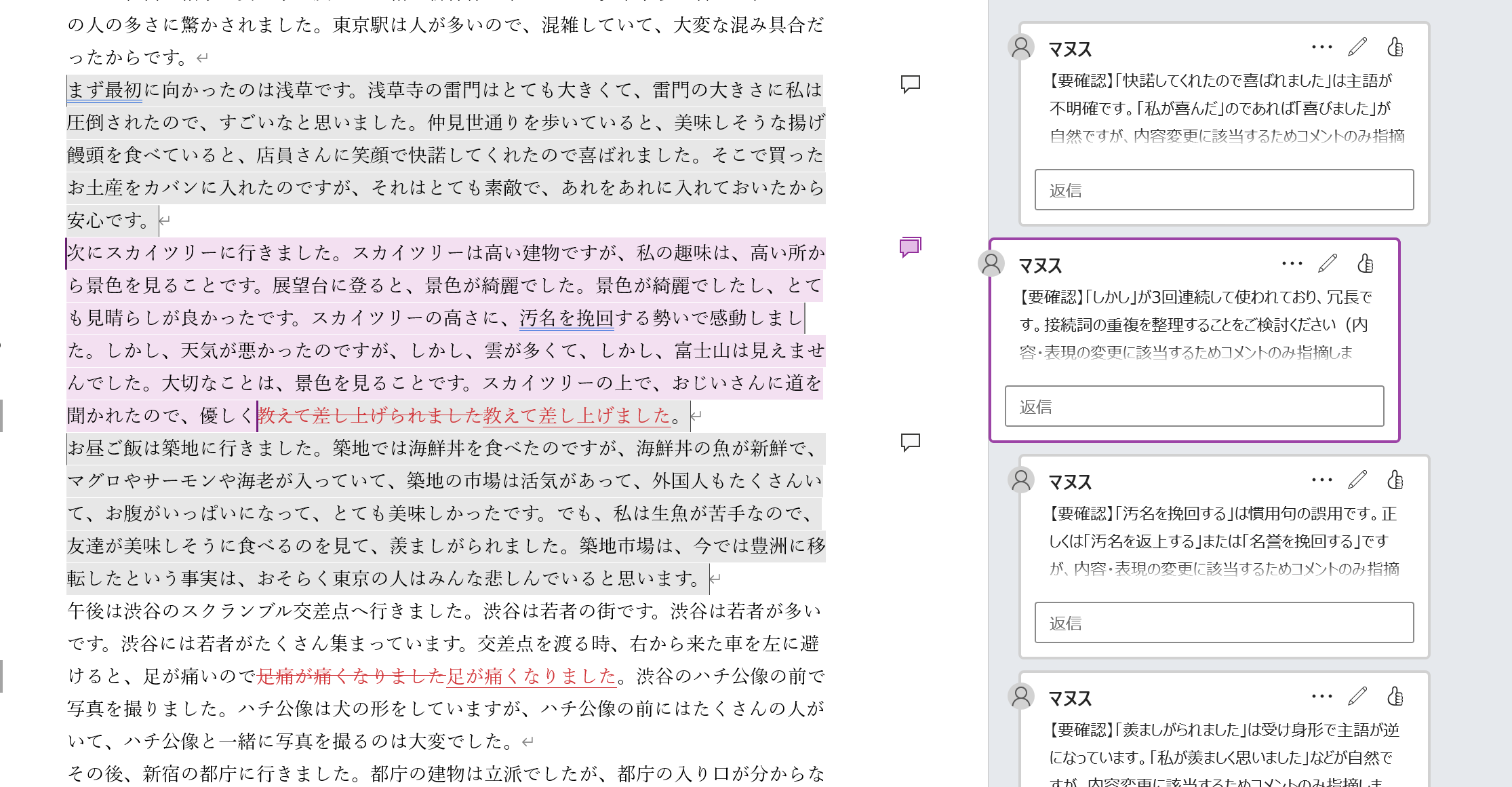 - コメントの内容を確認し、必要に応じて本文に反映する