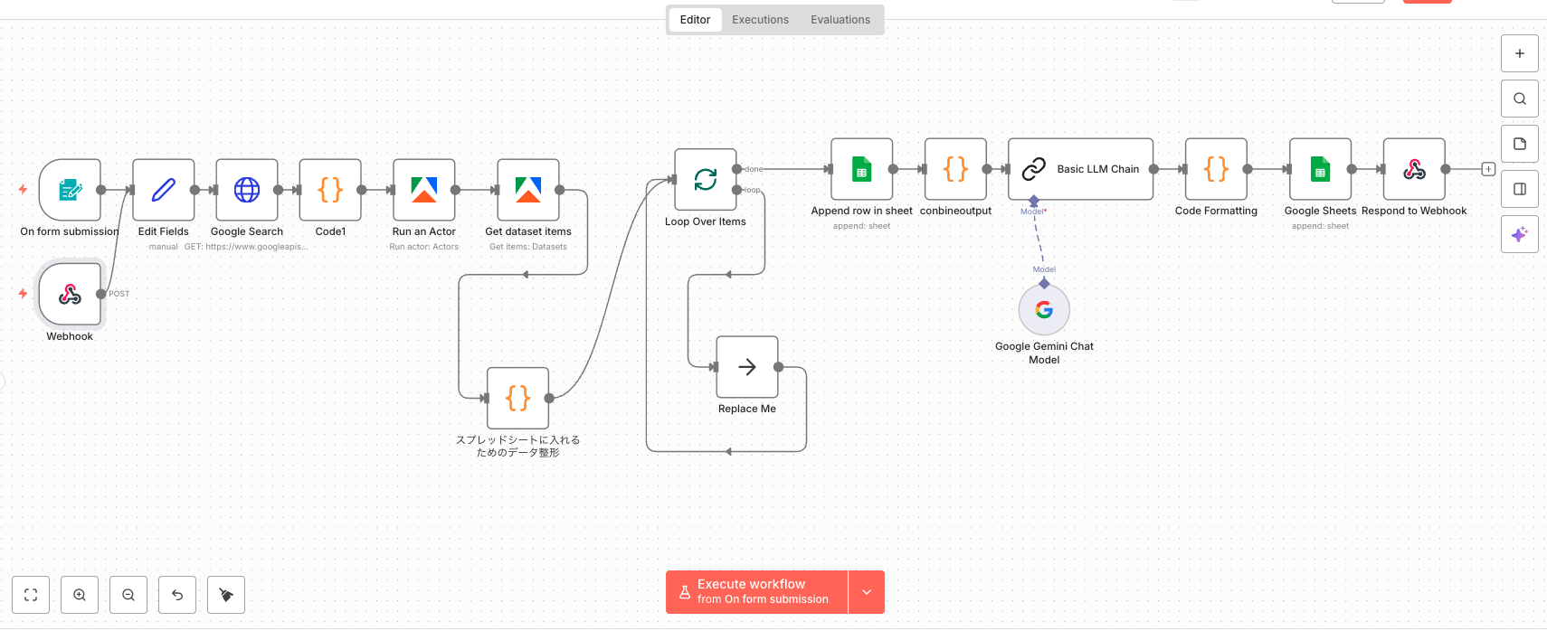 論より証拠。実際に弊社が作成し、運用している「SEO競合調査ワークフロー」をご覧ください。