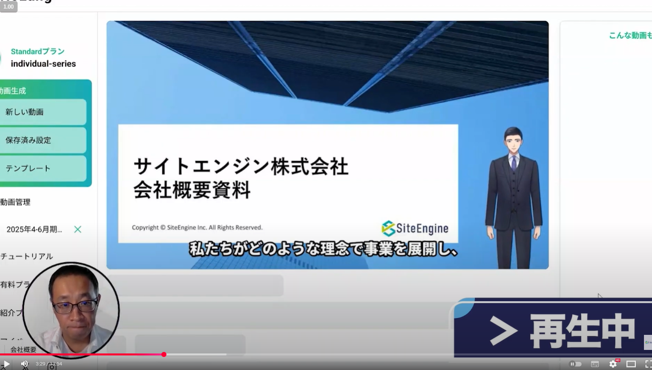 そして、わずか数分後。アバターが、スムーズに身振り手振りを交えながら、採用資料の内容を要約し、企業の魅力を語りかける動画が完成しす。この手軽さとクオリティは、まさに圧巻です。