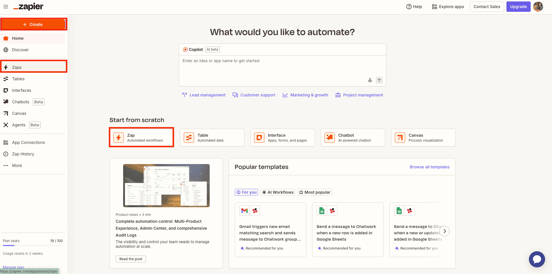 Zapierの無料プランは、月に実行できるタスク数が100回までという制限があります。Search Engine Landのような更新頻度の高いメディアを複数登録すると、数日で上限に達してしまう可能性があります。 まずは無料プランで仕組みの動作をテストし、本格的に運用する際は月2,000円程度の有料プランに切り替えることを前提に考えておくと良いでしょう。