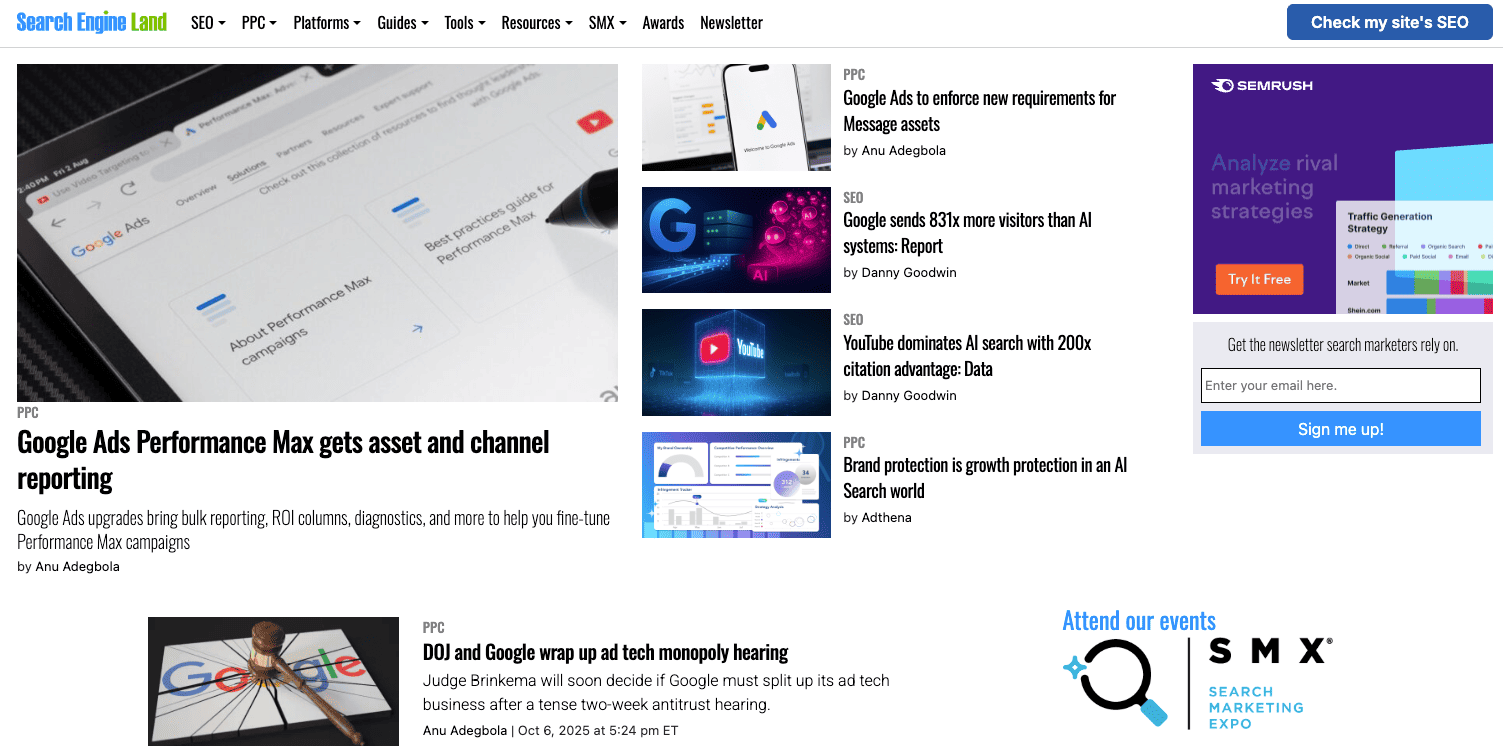 Googleのアルゴリズム更新やAI Overviewsの仕様変更など、検索業界の重大ニュースを最も速く、正確に報じる「業界の通信社」です。技術的な変更に関する一次情報源として、世界中のSEO担当者が毎日最初にチェックするサイトと言っても過言ではありません。