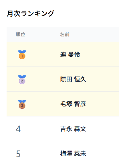 正直、私も最初はそれを懸念していました。 そこで、このツールには「ランキング」の機能を付けました。これをもとに優秀な人間を「表彰」するという仕組みづくりができます。チェック項目の達成率が高い人やチームを、みんなの前で称賛する仕組みです。