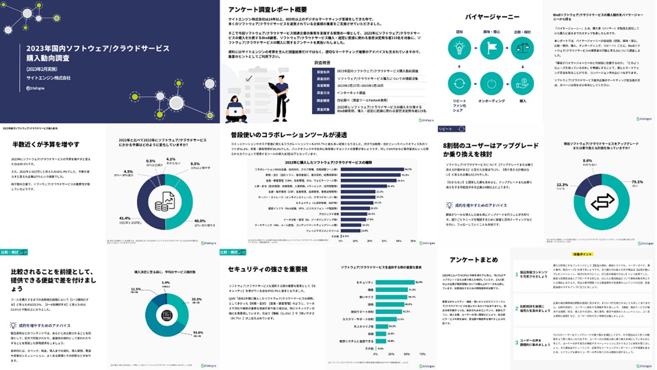 2023年にソフトウェア/クラウドサービスの購入を計画するBtoB顧客、ソフトウェア/クラウドサービス購入・選定に密接に関わる意思決定関与者219名を対象に、ソフトウェア/クラウドサービスの購入に関するアンケートを実施いたしました。