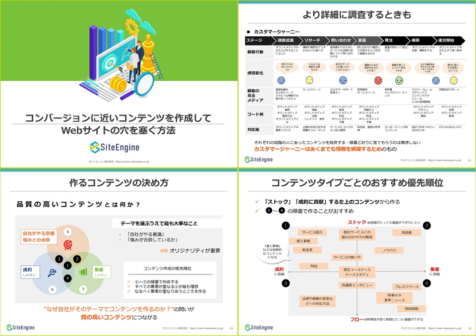 こちらの資料では「忙しいマーケティング担当者様」向けに、コンテンツマーケティングで効率よく成果を出すためのノウハウをご紹介しております。品質の高いコンテンツを作るためのチェックリストもご用意しておりますので、ぜひご活用ください。