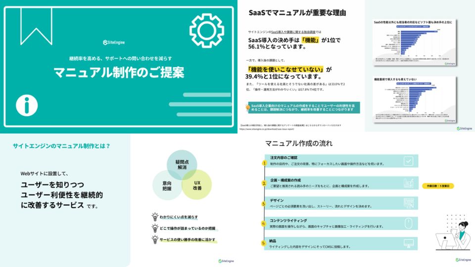 SaaSマニュアルをWebサイトに設置して、ユーザー利便性を継続的に改善するサービスです。