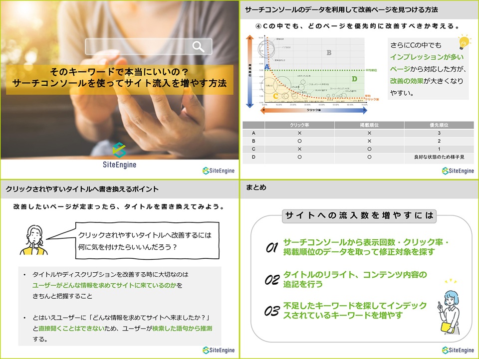 こちらの資料ではメディア担当者様向けにサーチコンソールなどを使ったWebサイトの分析方法と流入増加のためのノウハウについて解説しています。ツールを使った分析手順についても解説しておりますので、どうぞご活用ください。
