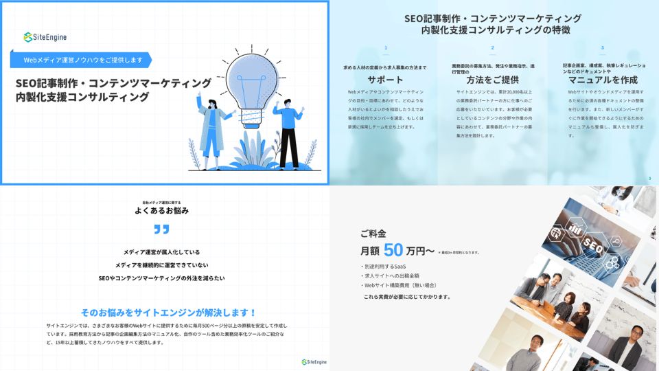 採用教育方法から記事の企画編集方法のマニュアル化、自作のツール含めた業務効率化ツールのご紹介など、15年以上蓄積してきたノウハウをすべて提供します。
