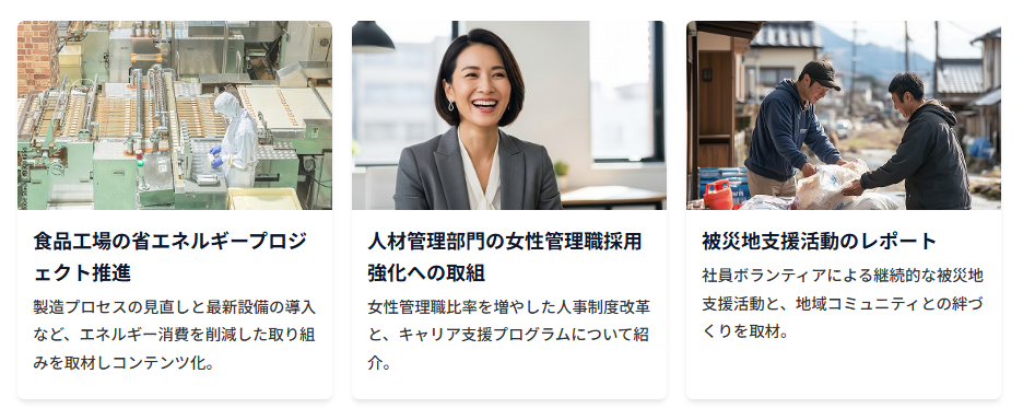 CSR・SDGs広報に関するサイト構築を弊社にご依頼いただく際、制作事例として掲載許可をいただけますと、CSRに関連したコラム記事制作を特別価格でご提供いたします。この機会にCSR広報を始めてみませんか?