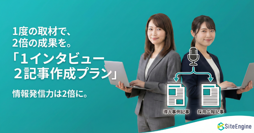 サイトエンジンでは、これまでの豊富なインタビュー制作実績を活かし、1回の取材でターゲットや目的の異なる「2本の記事」を制作する新プランを開始いたします。