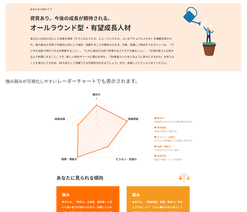 RPAテクノロジーズ株式会社様はRPA製品をメインに、企業の業務効率化を支援しています。DX推進に積極的で、DX人材育成サービス「DXpass」を運用しています。「DXpass」を構成する柱のひとつとして、神奈川大学杉山教授ご協力のもと、社員のDX適性を可視化する「DX適性診断」を共同開発しました。