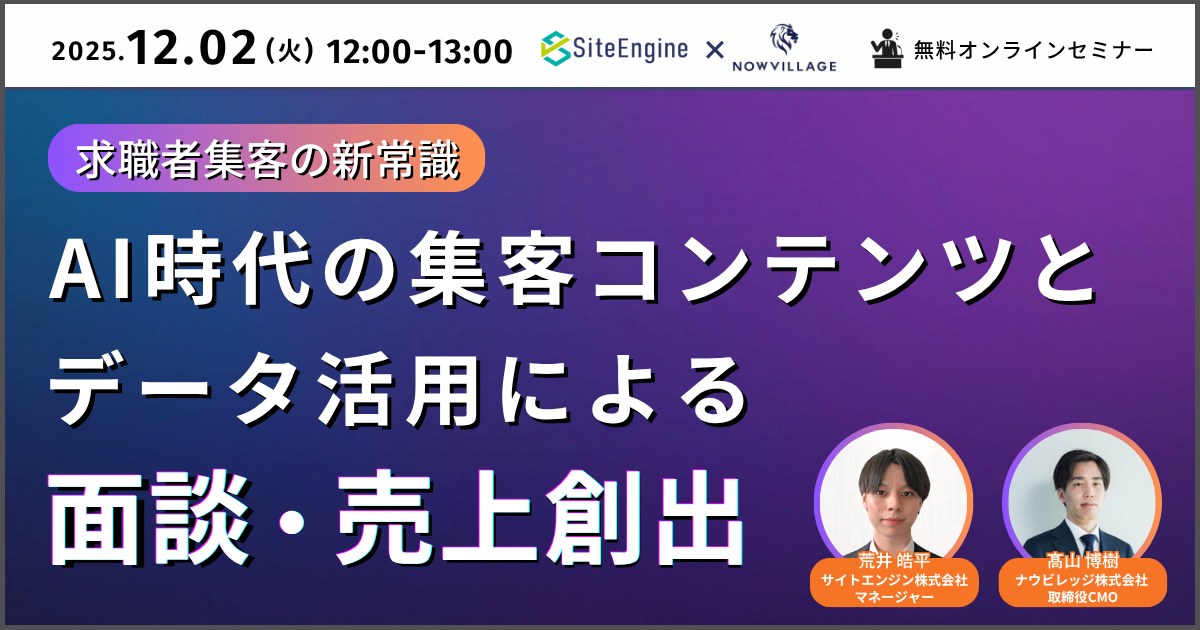 12月2日(火)【求職者集客の新常識】AI時代の集客コンテンツとデータ活用による面談・売上創出