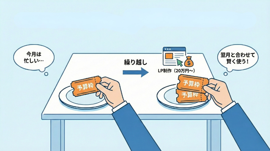 繰り越しは「翌月末まで」となります。予算を無駄にしないよう、毎月の定例会にて貴社の状況に合わせた最適な消化プランをご提案します。